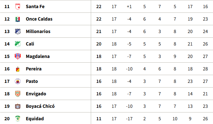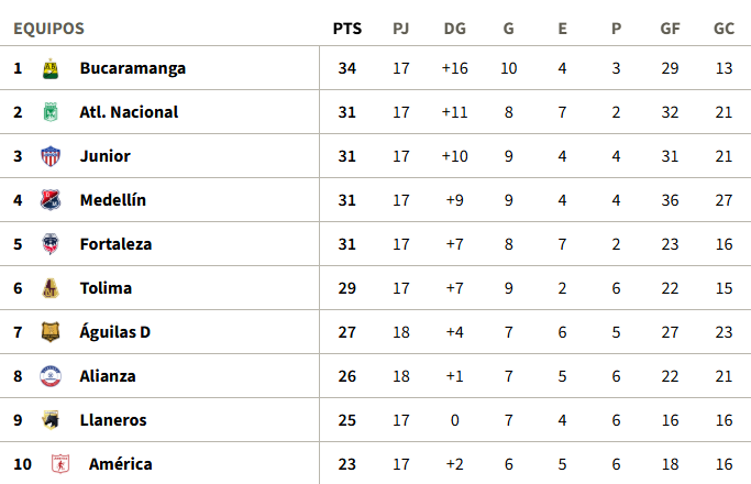 Tabla de Posiciones fecha 18 Liga BetPlay ll-2025 (provisional)