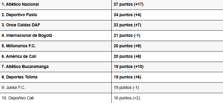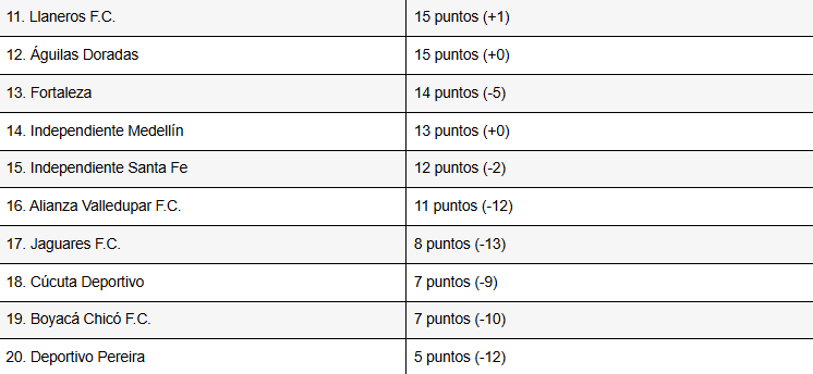 Tabla de posiciones de la fecha 13 de la Liga BetPlay I-2026 (provisional)
