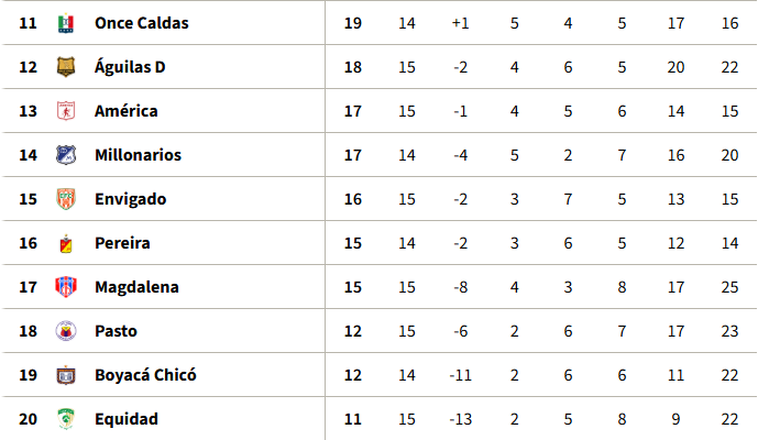 Tabla de Posiciones fecha 15 Liga BetPlay ll-2025 (provisional)