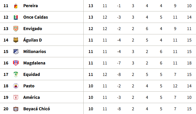 En la fecha 13, Envigado visitará al América de Cali, mientras que Alianza FC recibirá a Llaneros FC.