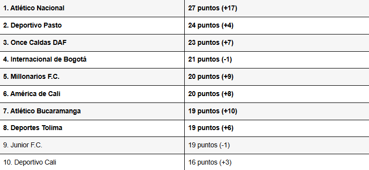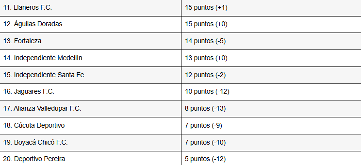 Tabla de posiciones de la fecha 13 de la Liga BetPlay I-2026 (provisional)