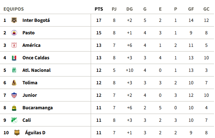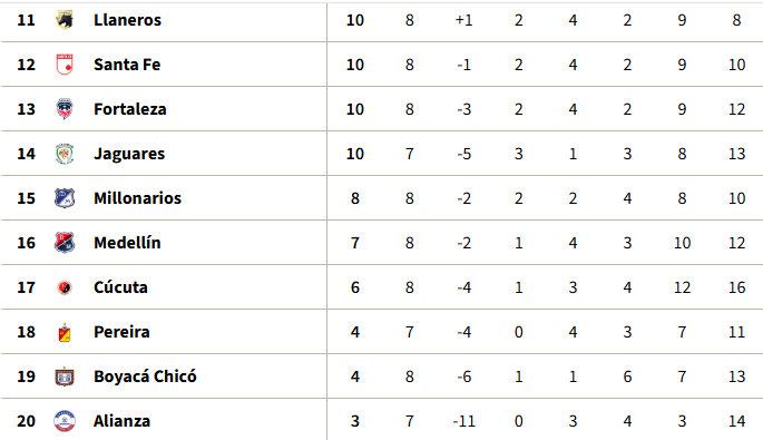 Tabla de Posiciones fecha 8 Liga BetPlay l-2026