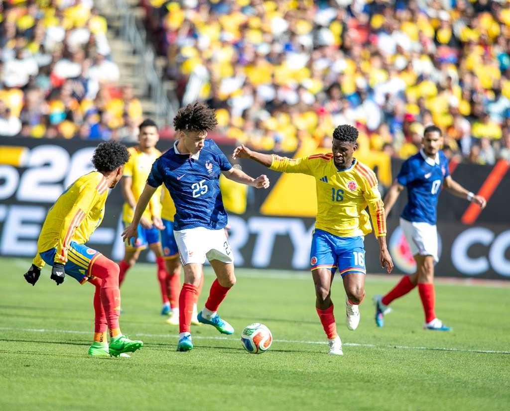 Désiré Doué con doblete (28′ y 55′) y Marcus Thuram (40′), le aguaron la fiesta a los colombianos que llenaron las tribunas del estadio en Maryland, vistiendo la tradicional camiseta amarilla. El descuento de los cafeteros fue obra de Jaminton Campaz a los 76 minutos.