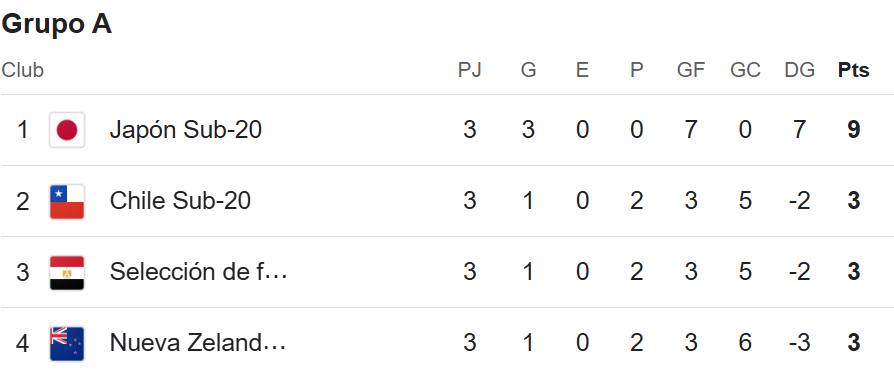 Tabla de Posiciones Grupo A fecha 3 Mundial Sub 20 Chile 2025
