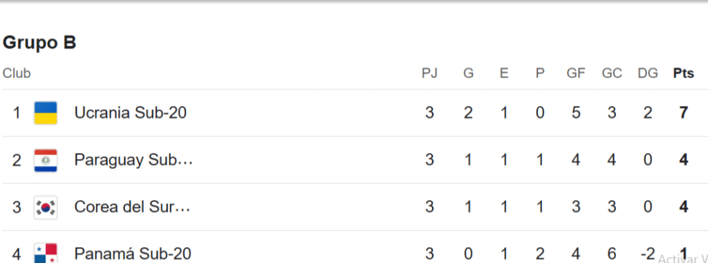 Tabla de Posiciones Grupo B fecha 3 Mundial Sub 20 Chile 2025