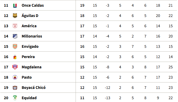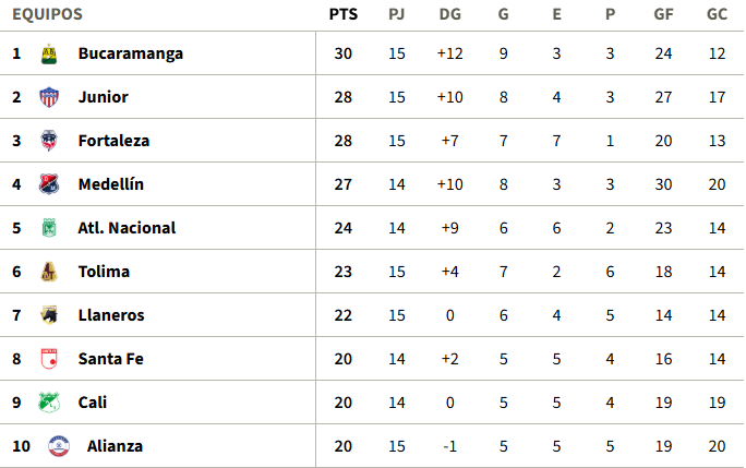 Tabla de Posiciones fecha 15 Liga BetPlay ll-2025 (provisional)