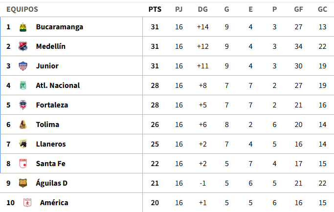 Bucaramanga con 31 puntos al igual del Medellín y el Junior, ya aseguraron su cupo en los cuadrangulares semifinales. Millonarios todavía tiene opciones matemáticas de llegar a los cuadrangulares semifinales de la Liga, para lo cual debe ganar todos sus encuentros y esperar otros resultados.