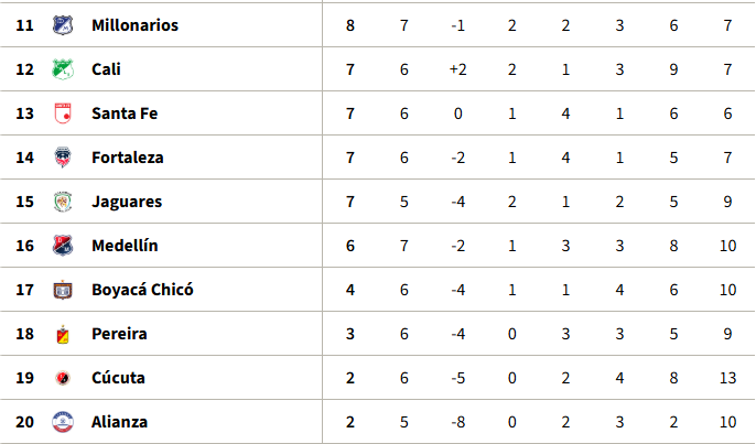 Tabla de Posiciones fecha 7 Liga BetPlay l-2026 (provisional)