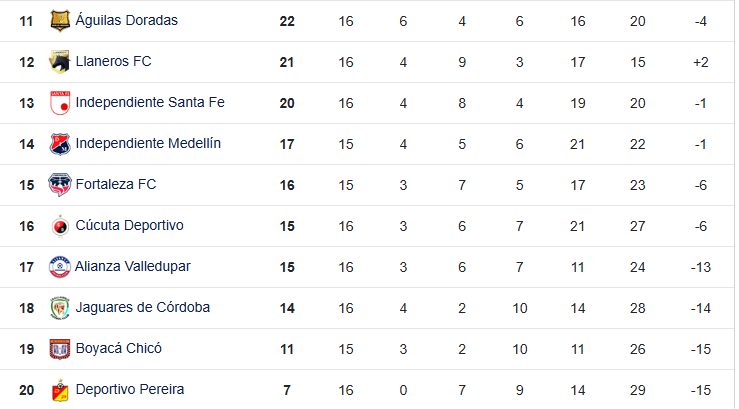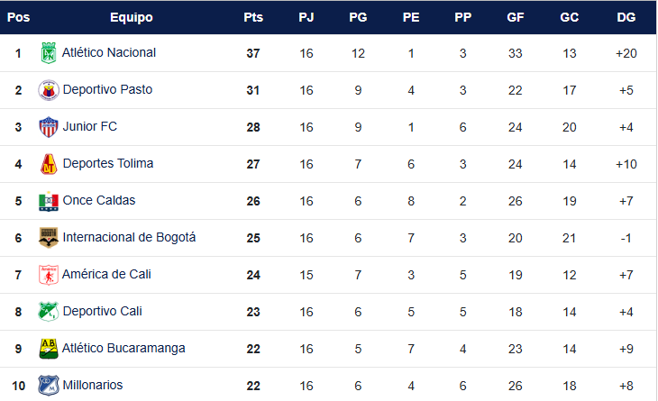 Tabla de Posiciones fecha 16 de la Liga BetPlay I-2026