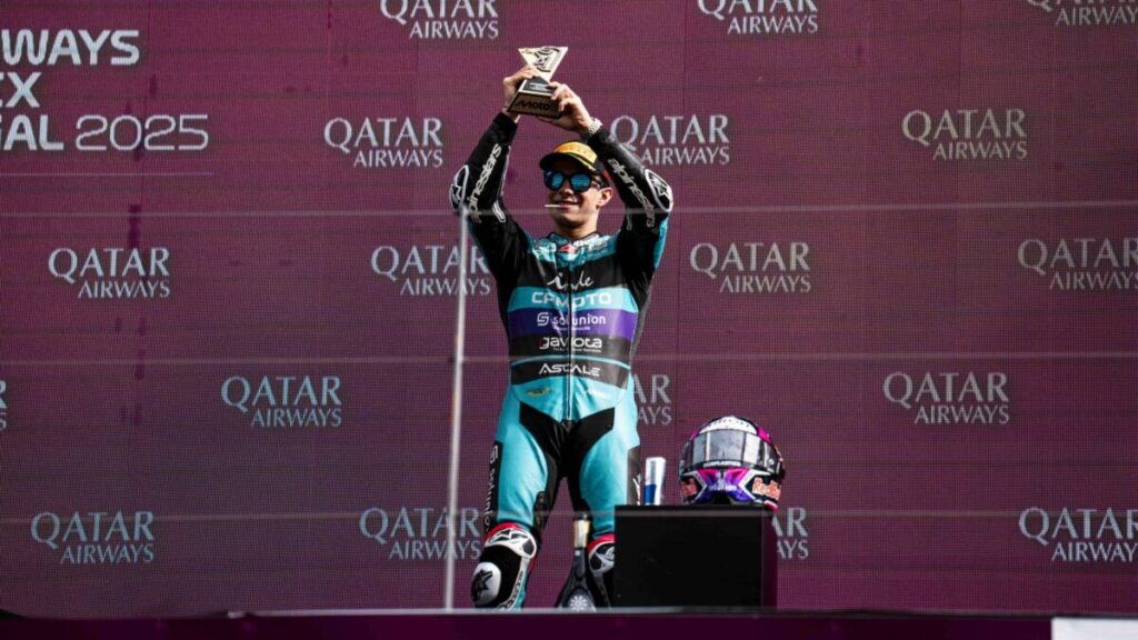 Alonso el piloto de compite por Colombia ocupó el tercer lugar en el Gran Premio de Portugal y registró su tercer podio consecutivo en el Moto2, después de Australia y Malasia, siendo este el quinto en su temporada debut en la categoría antesala del MotoGP.