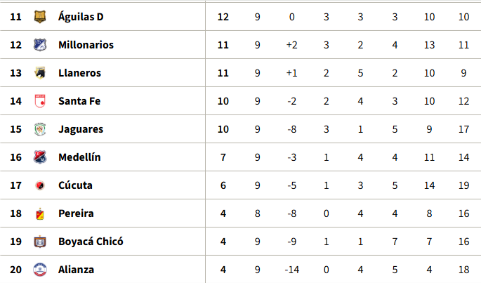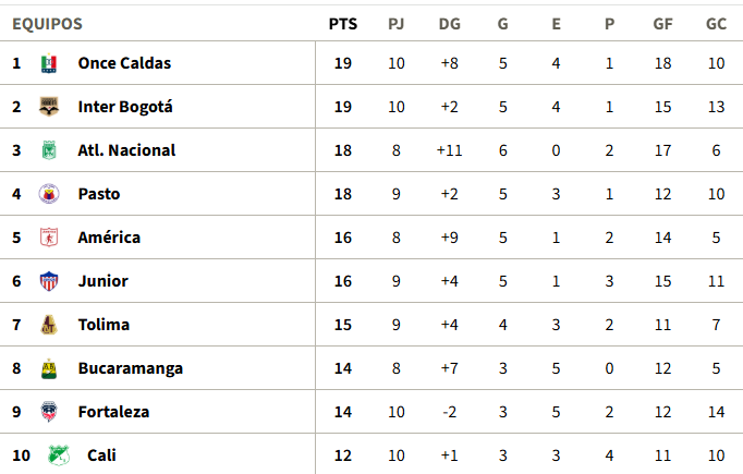 Tabla de Posiciones fecha 10 Liga BetPlay l-2026 (provisional)