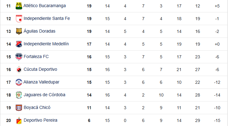 Tabla de Posiciones fecha 16 de la Liga BetPlay I-2026