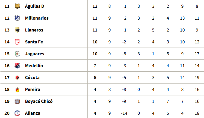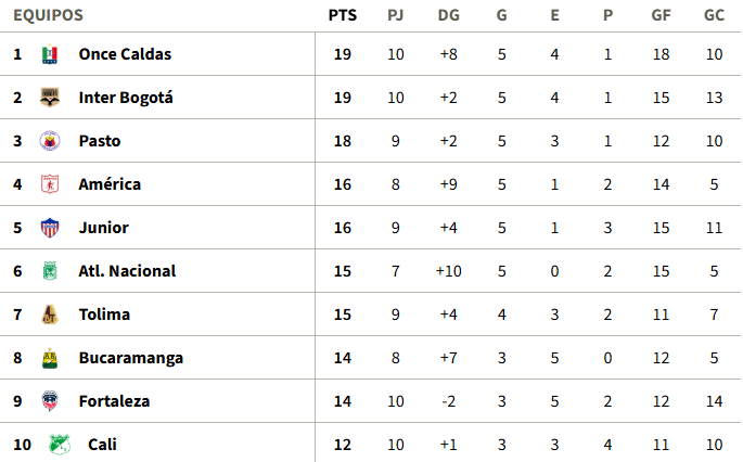 Tabla de Posiciones fecha 10 Liga BetPlay l-2026 (provisional)