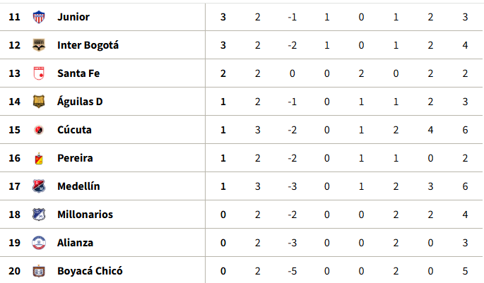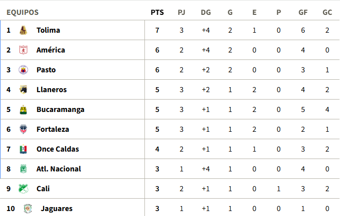 Tabla de posiciones de la fecha 3 de la Liga BetPlay I-2026 (provisional)