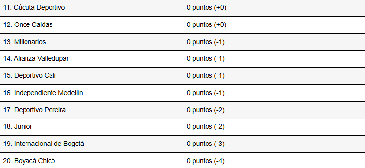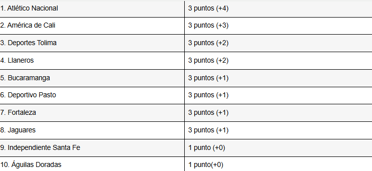 Tabla de posiciones de la fecha 1 de la Liga BetPlay I-2026 (provisional)